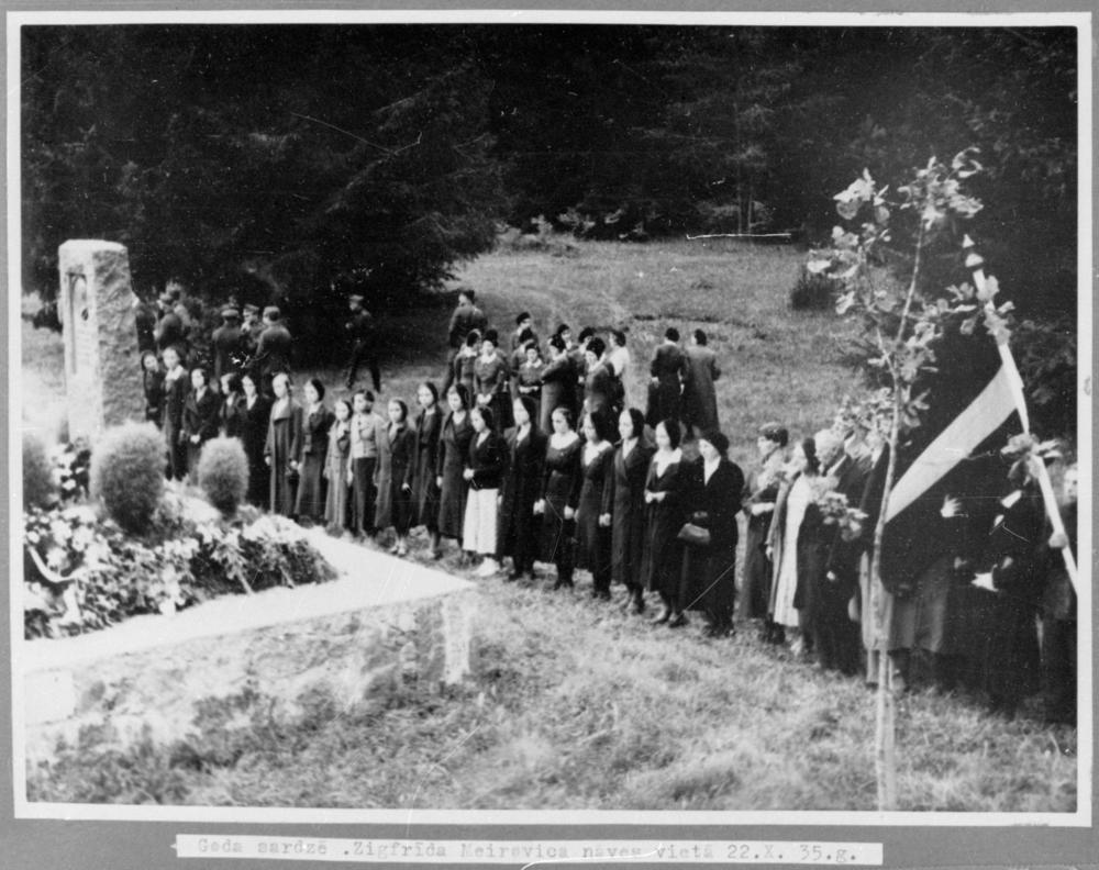 Tukuma mazpulka organizācijas dalībnieki pie pirmā Latvijas Ārlietu ministra un otrā Latvijas Republikas Ministru prezidenta Zigfrīda Anna Meierovica nāves vietas.