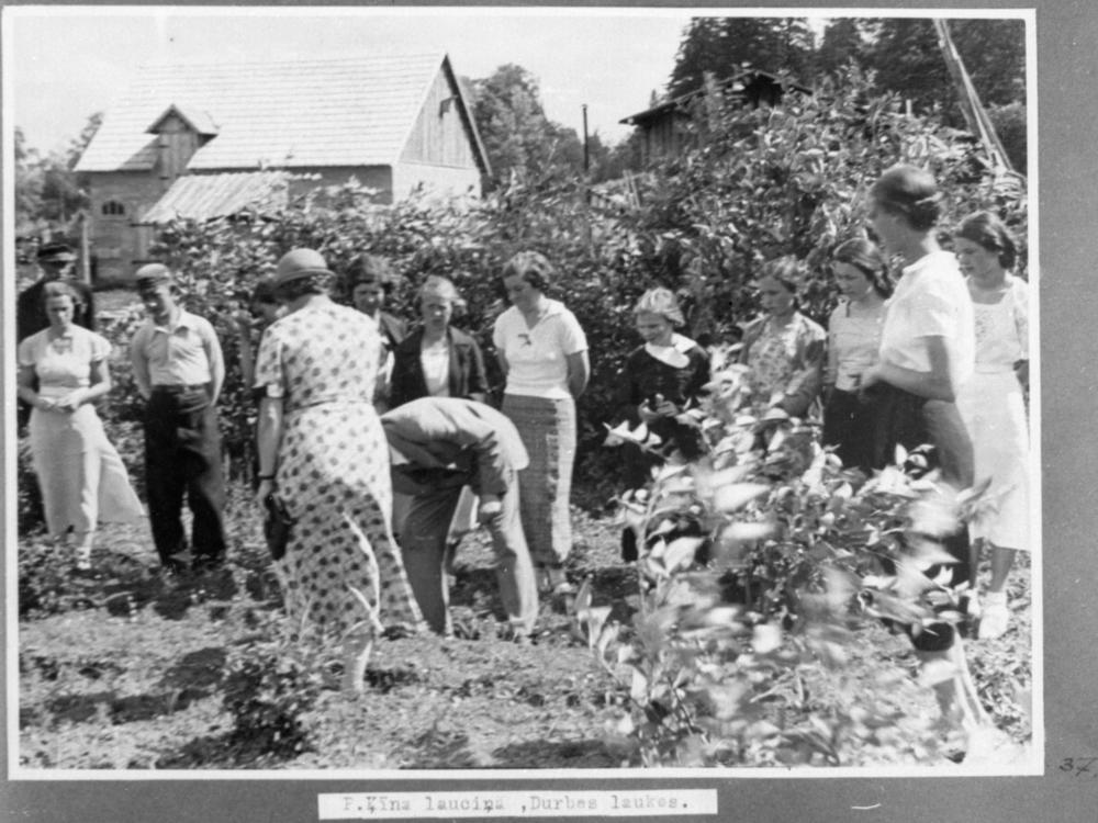 Tukuma mazpulka organizācijas dalībnieki zemnieces P. Ķīnas dārzā, nometnes laikā Liepājas apriņķa Durbē.
