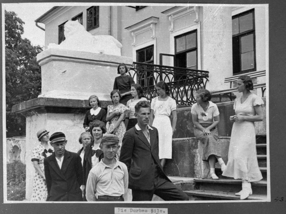 Tukuma mazpulka organizācijas nometnes dalībnieki pie Durbes pils ieejas.