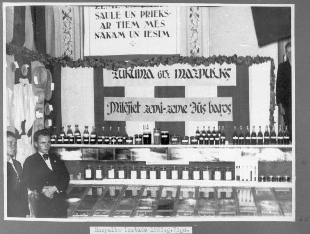 Tukuma mazpulka organizācijas dalībnieku ierīkotais stends mazpulku darba izstādes laikā, kura tik rīkota no 11. līdz 18. oktobrim Rīgas Latviešu biedrības namā.