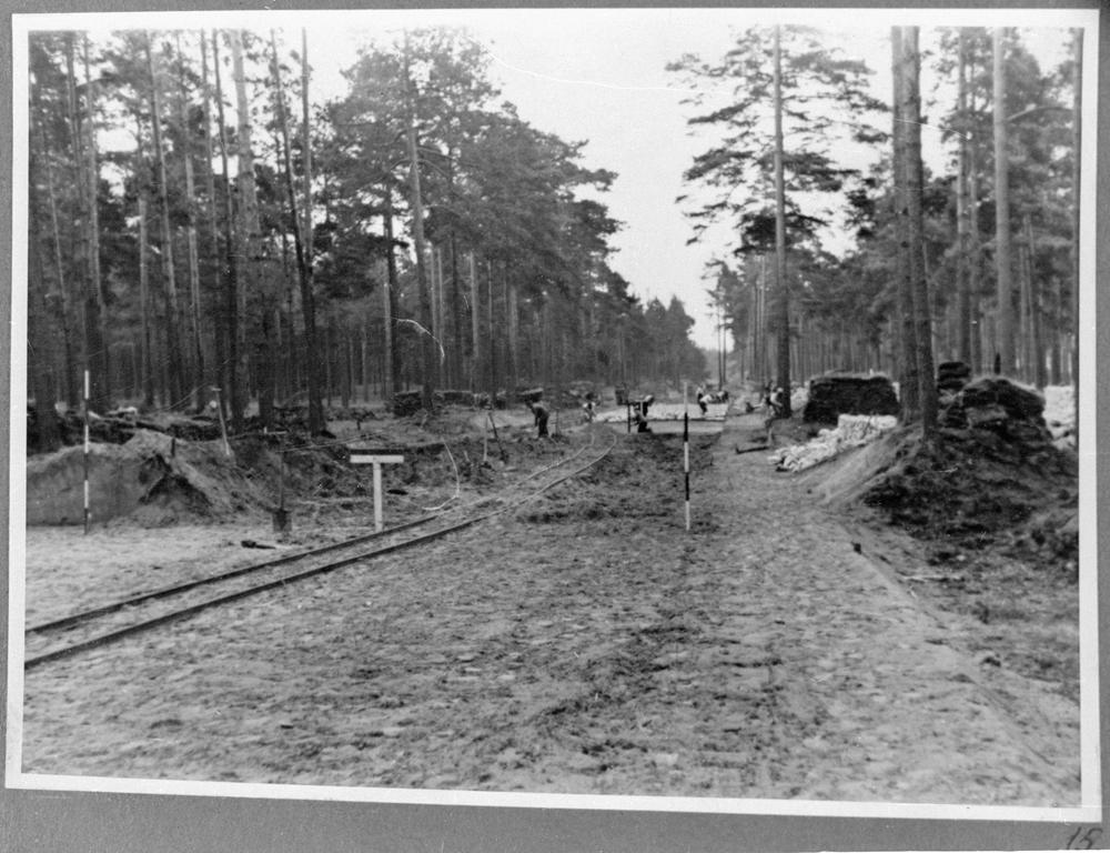 Ceļa būves darbi no Meža prospekta virzienā uz Dzirnupes staciju (Mangaļi), tagad Viestura prospekts Rīgā. Ceļa segas un klātnes izveidošana.