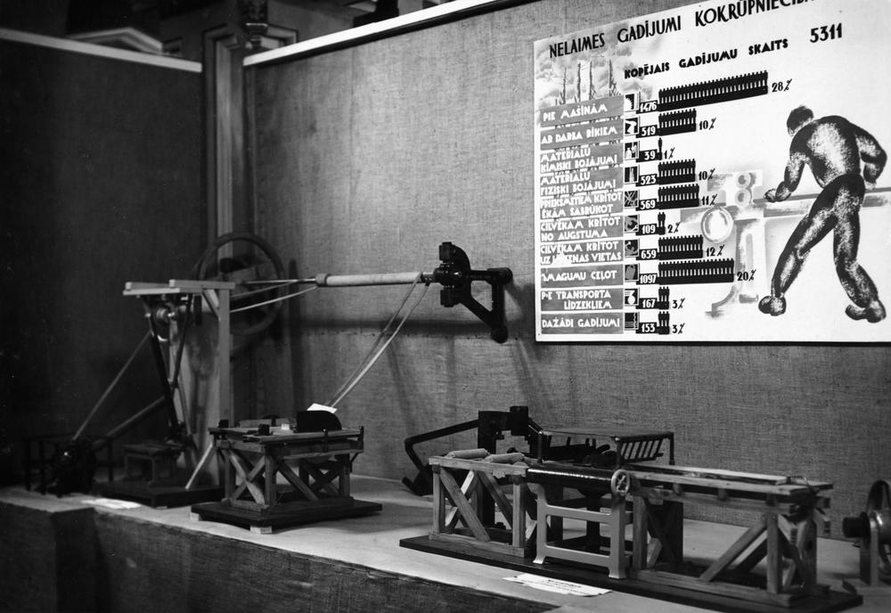Veselības veicināšanas biedrības izstāde ''Darbs un atpūta'' no 1939. gada 18. marta līdz 3. aprīlim Kongresu un Amatu namos (Lielās ģildes un Mazās ģildes namos). Darba aizsardzībai veltītās ekspozīcijas daļa. Kokrūpniecības iekārtas.