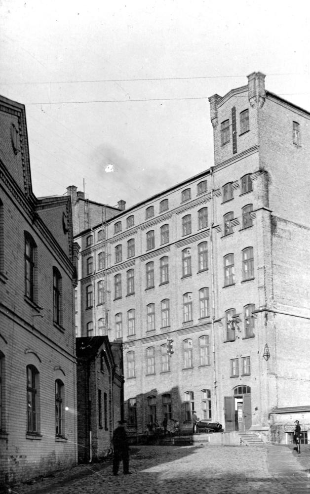 Akciju sabiedrības ''Rīgas tekstilfabrika'' ("Tekstils") ēku komplekss Baltāsmuižas ielā (tagad Baltajā ielā 3/9) un galveno ieeju fabrikā.