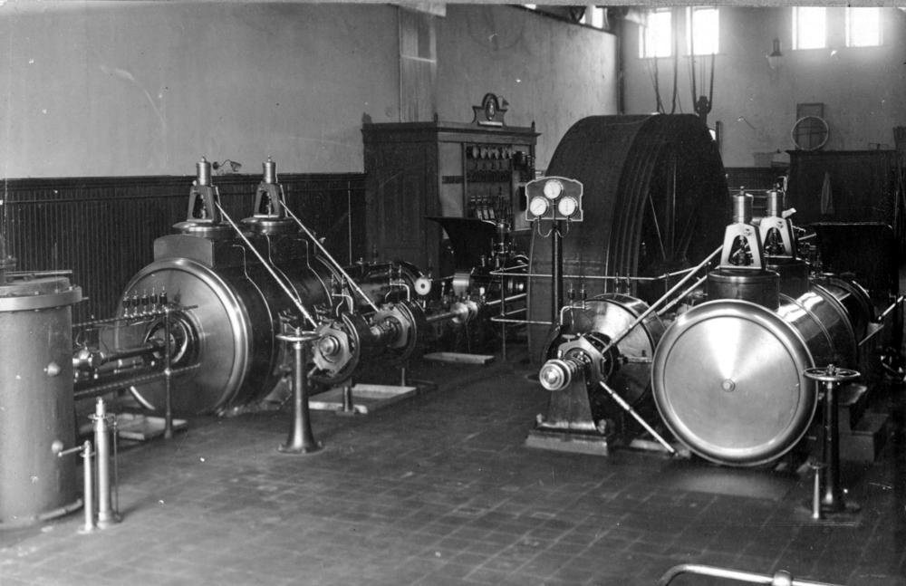 Akciju sabiedrības ''Rīgas tekstilfabrika'' ("Tekstils") fabrikas iekšskats Baltāsmuižas ielā (tagad Baltajā ielā 3/9). Attēla centrā atrodas tvaika mašīna 584HP.
