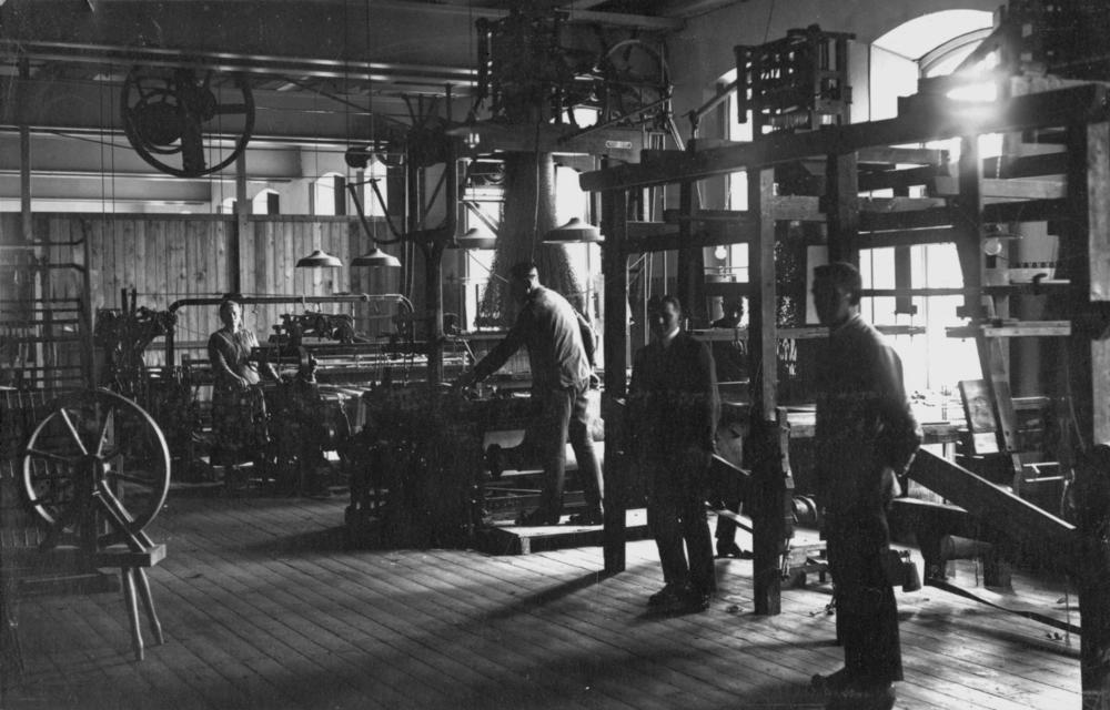 Akciju sabiedrības ''Rīgas tekstilfabrika'' ("Tekstils") paraugu austuves iekšskats Baltāsmuižas ielā (tagad Baltajā ielā 3/9).