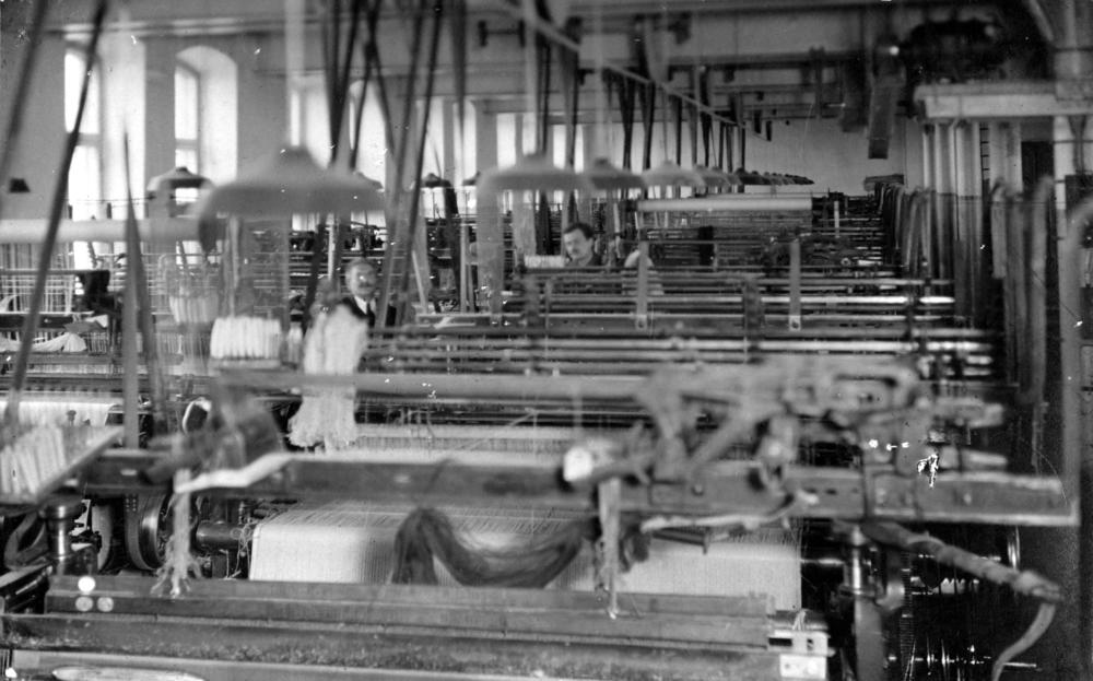 Akciju sabiedrības ''Rīgas tekstilfabrika'' ("Tekstils") dāmu drēbju austuves iekšskats Baltāsmuižas ielā (tagad Baltajā ielā 3/9). Attēlā parādīta puse no 2. austuves telpām ar 67 aužamiem krēsliem.