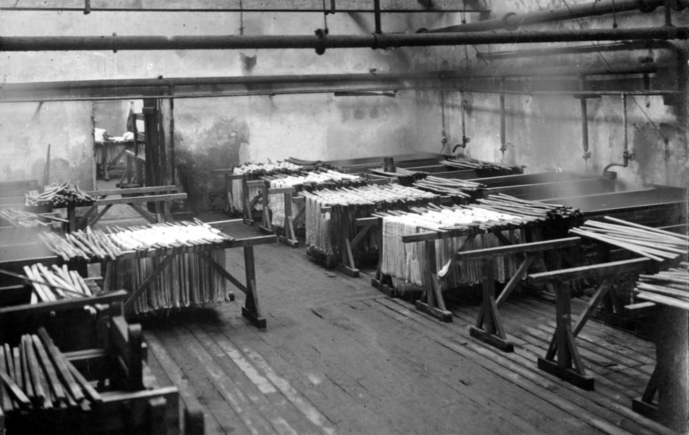 Akciju sabiedrības ''Rīgas tekstilfabrika'' ("Tekstils") dziju krāsotavas iekšskats Baltāsmuižas ielā (tagad Baltajā ielā 3/9).