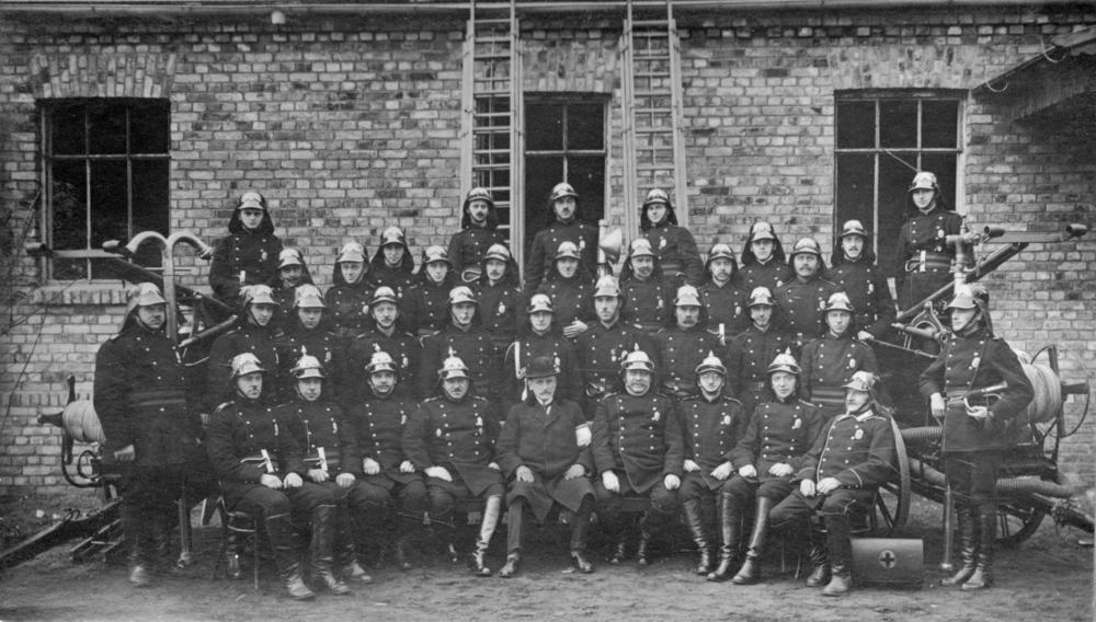 Rīgas tekstilfabrika Baltā ielā. Fabrikas brīvprātīgie ugunsdzēsēji (strādnieki un ierēdņi).