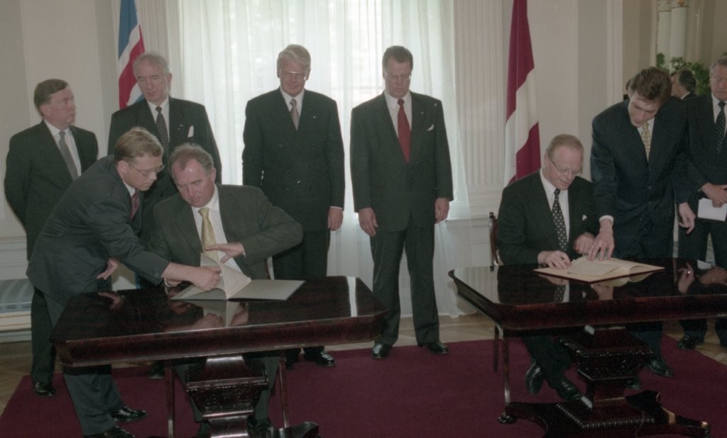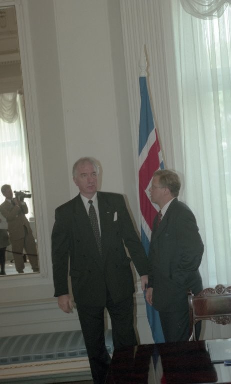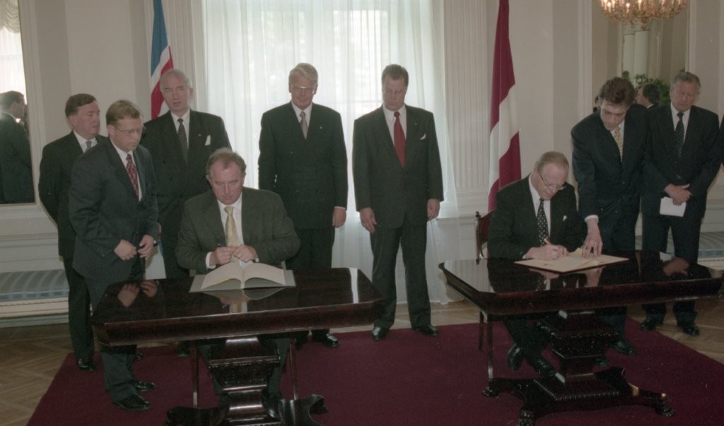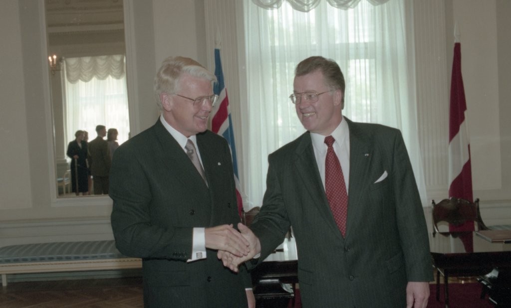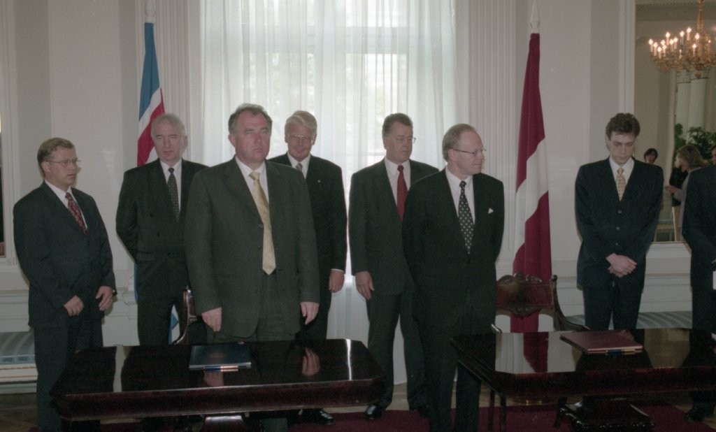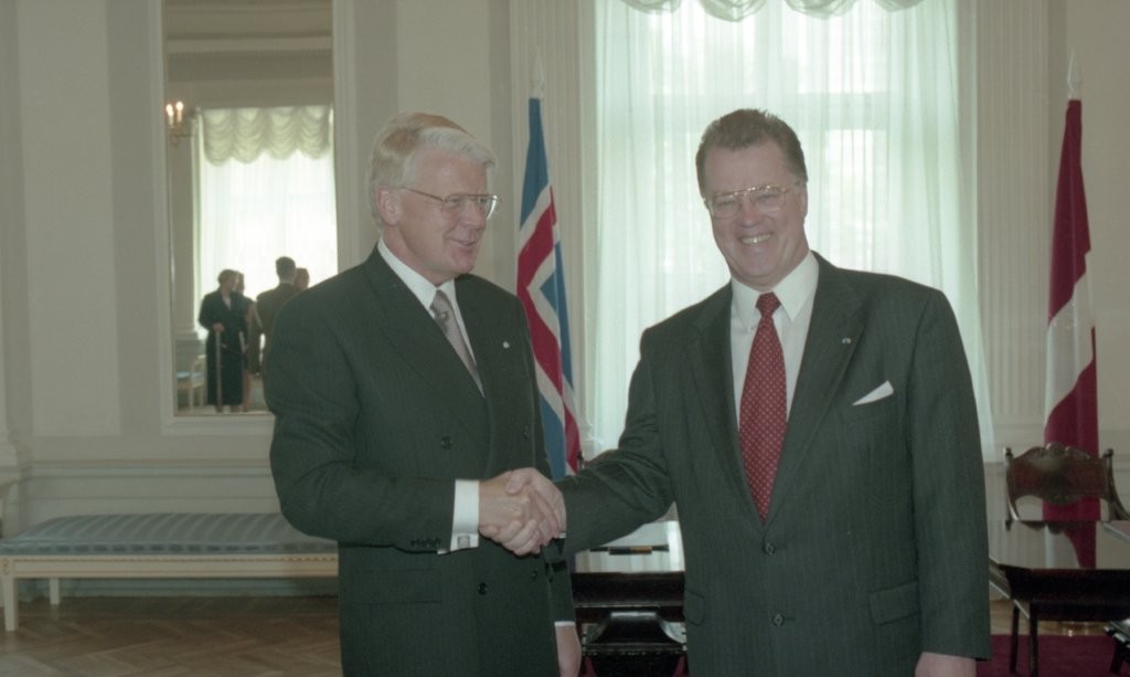 Islandes prezidenta O. R. Grimsona sagaidīšana lidostā un Rīgas pilī. Līguma parakstīšana.