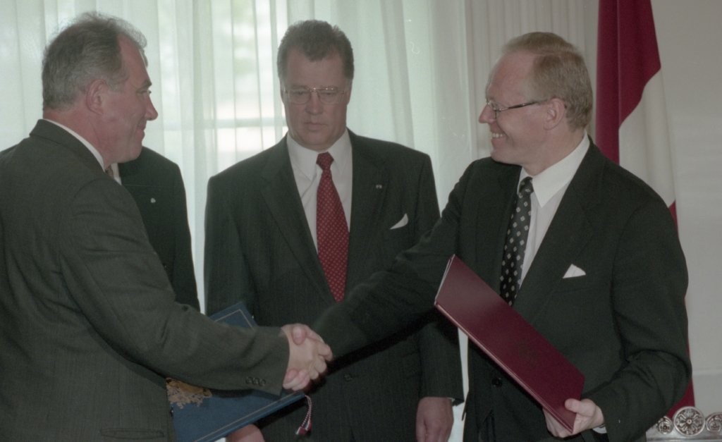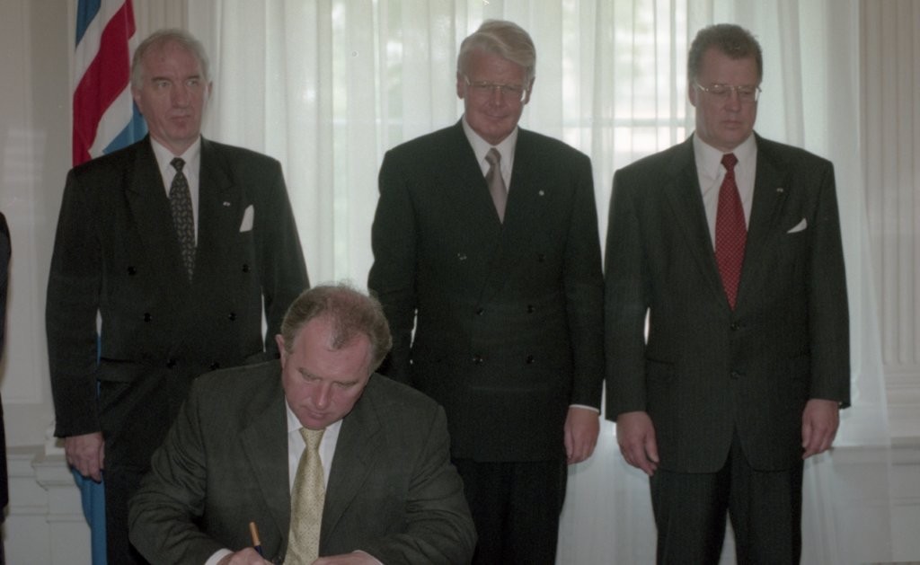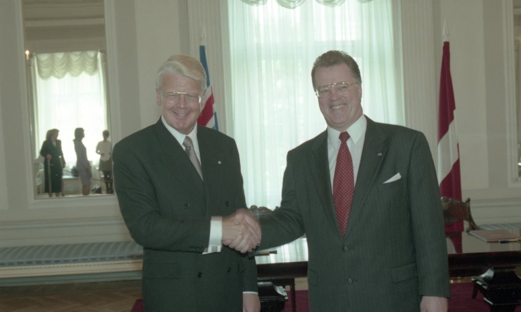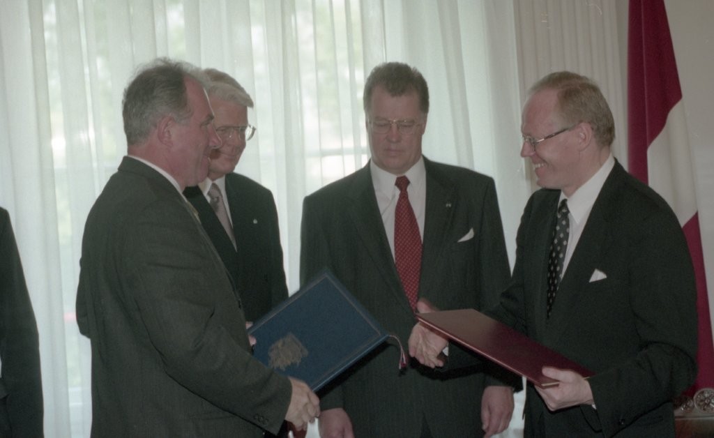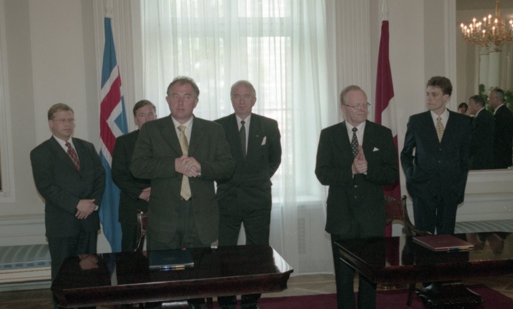 Islandes prezidenta O. R. Grimsona sagaidīšana lidostā un Rīgas pilī. Līguma parakstīšana.