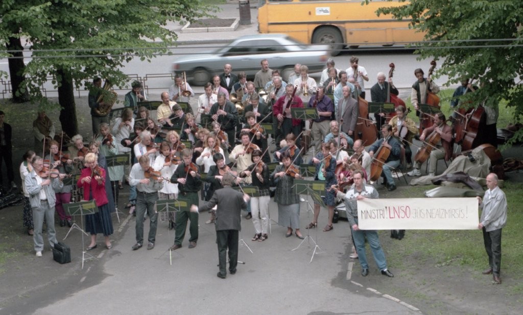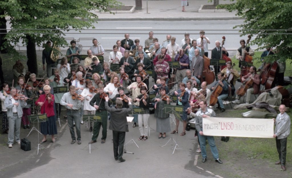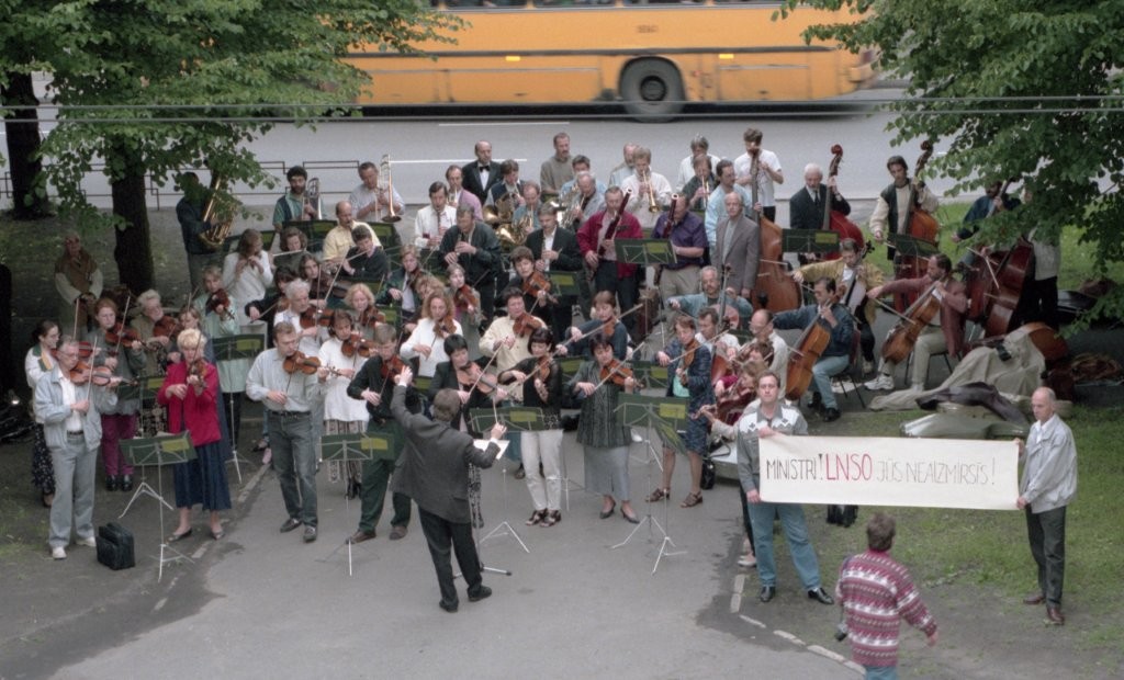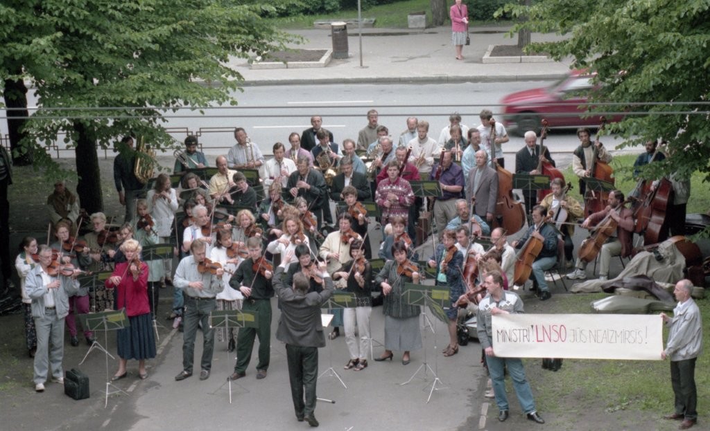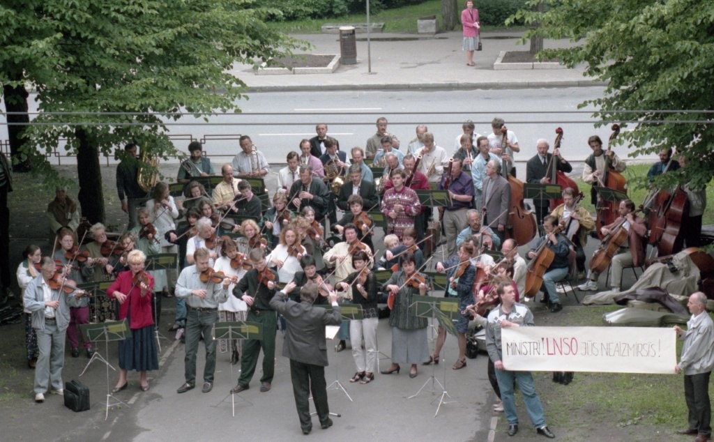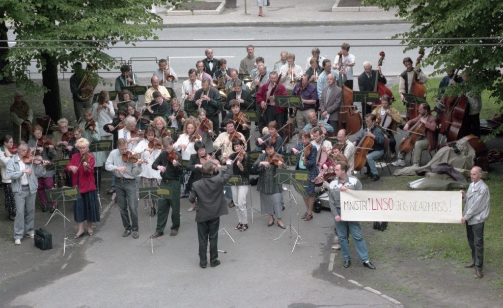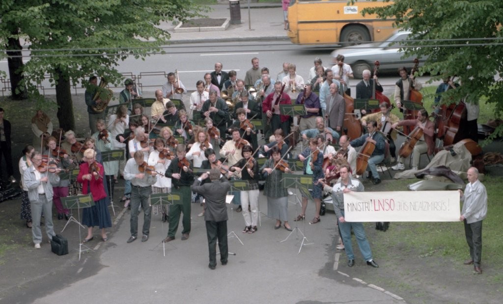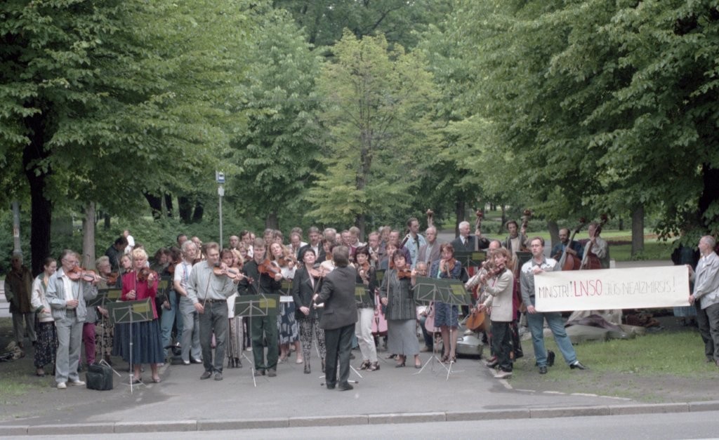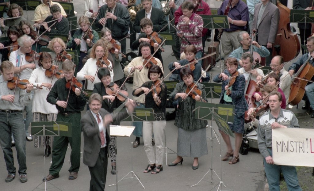 Simfoniskais orķestris piketē un muzicē pie Ministru kabineta