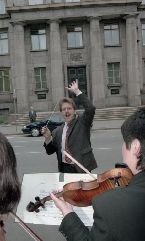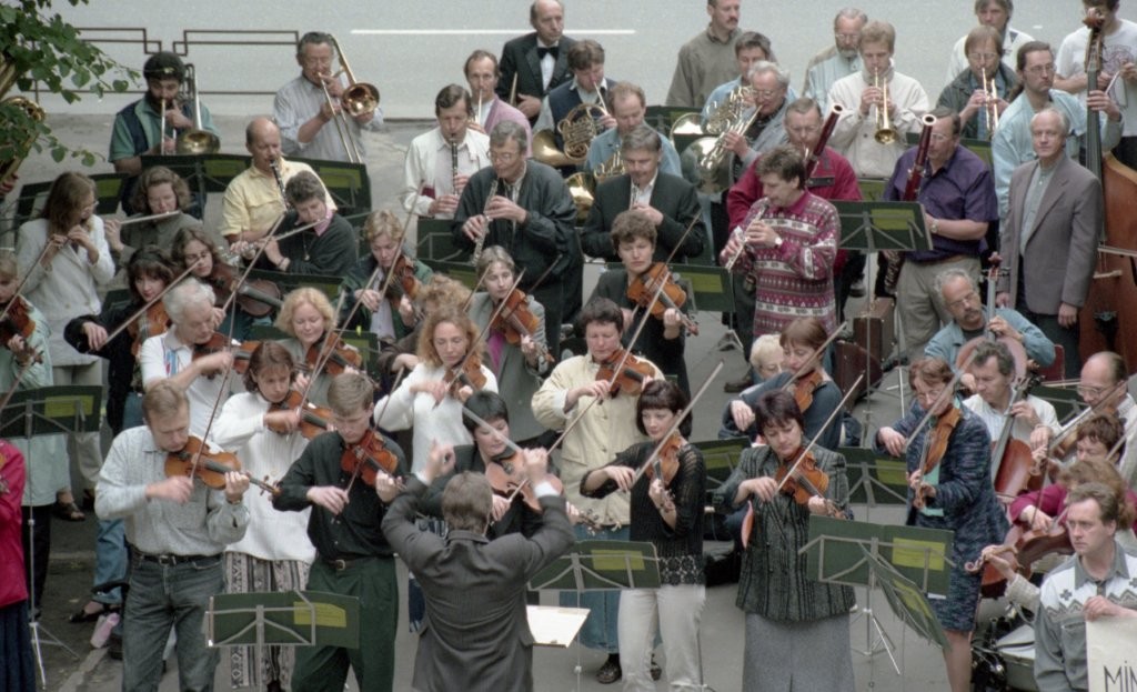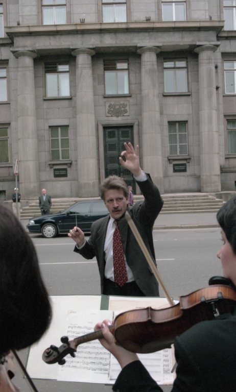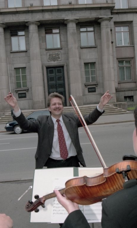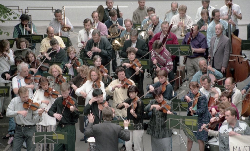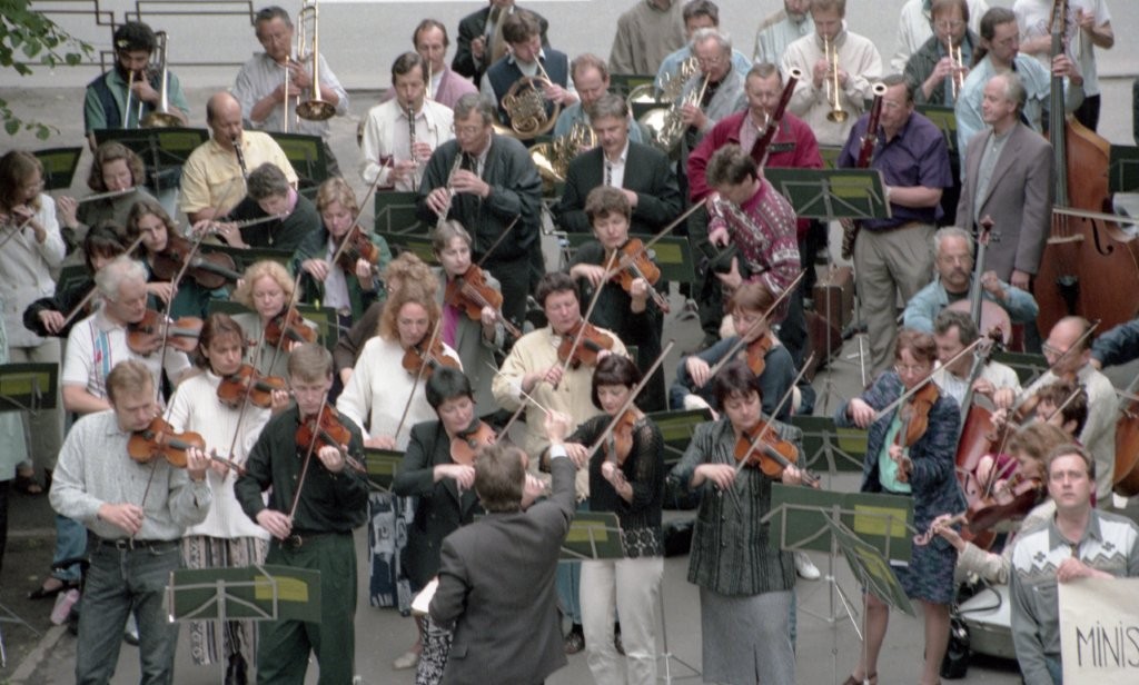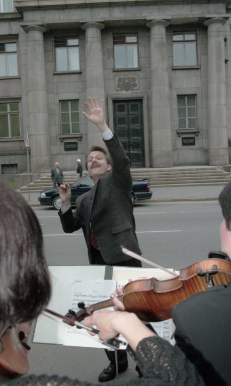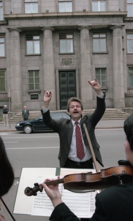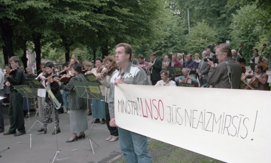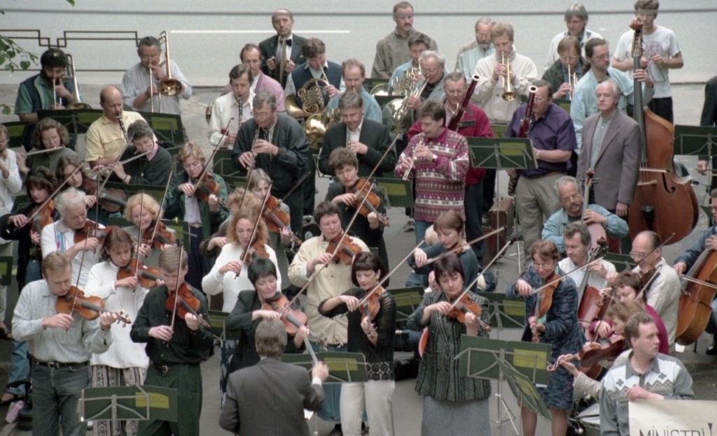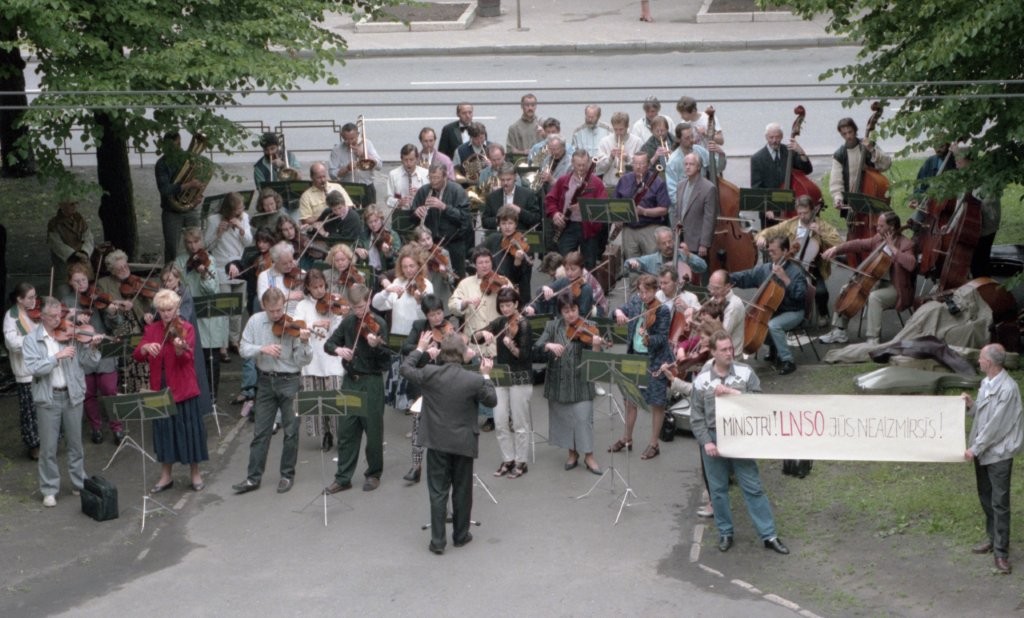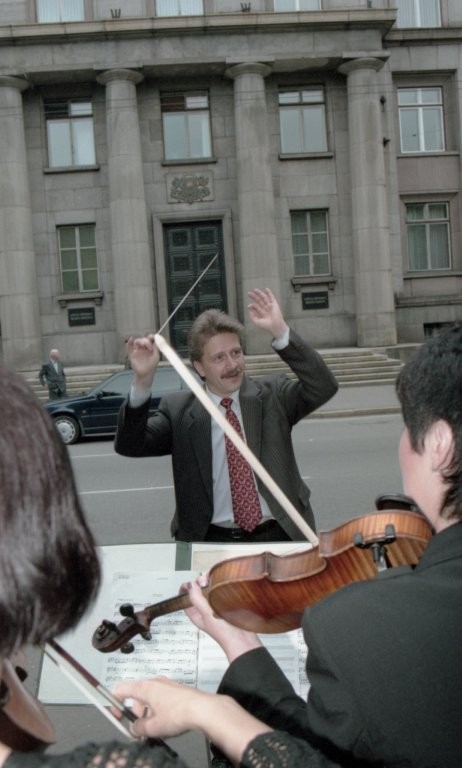 Simfoniskais orķestris piketē un muzicē pie Ministru kabineta