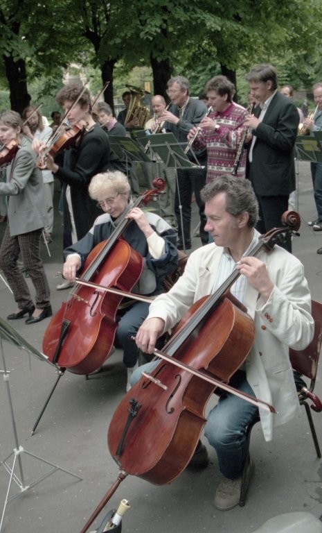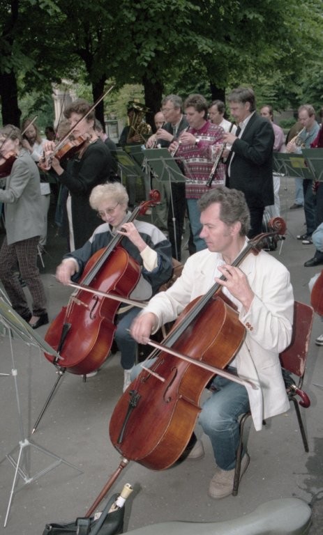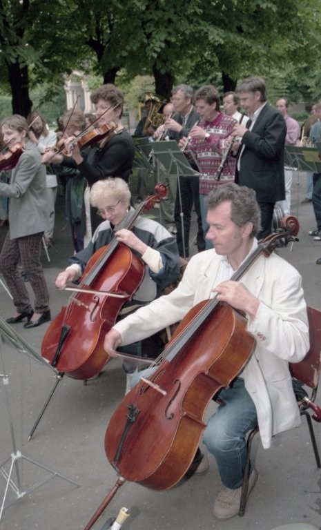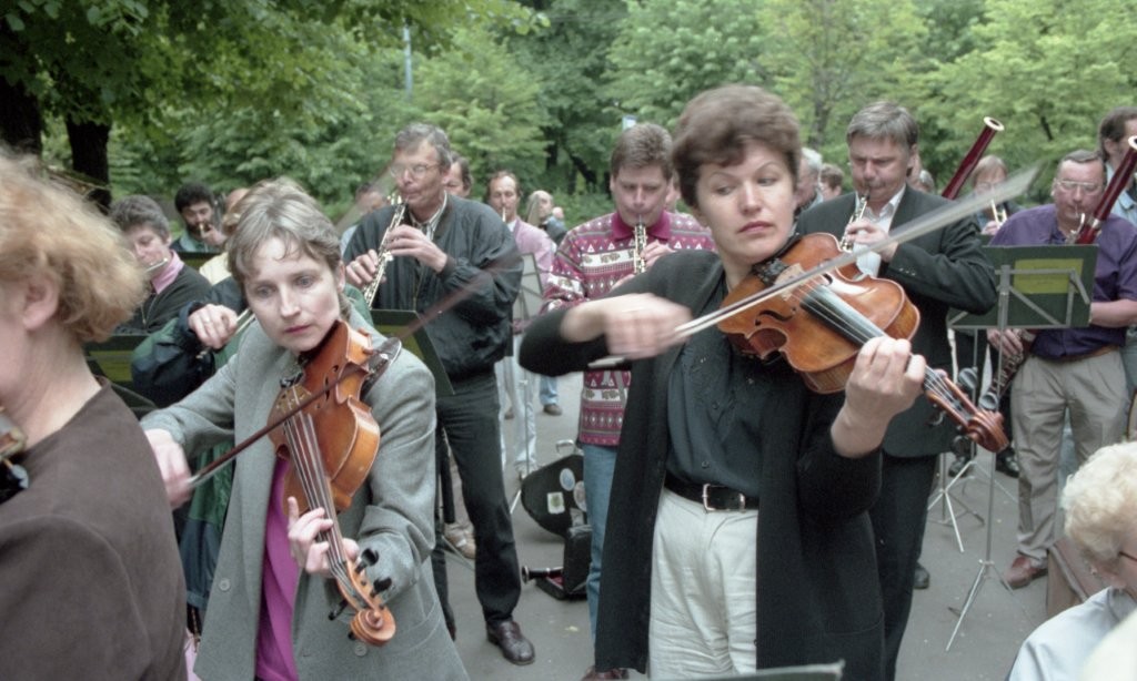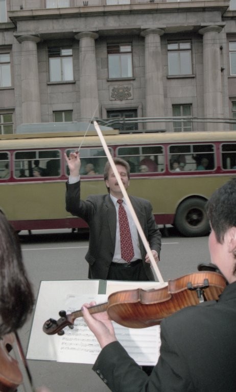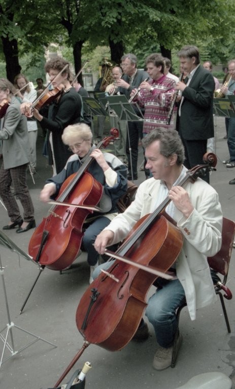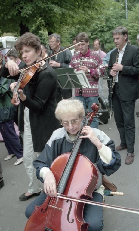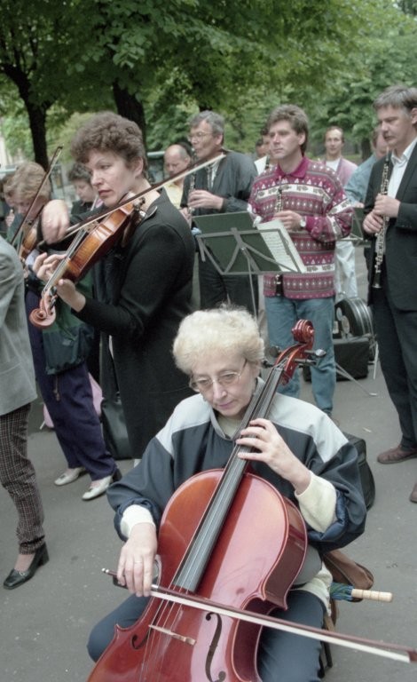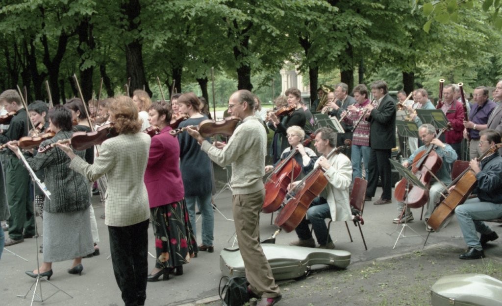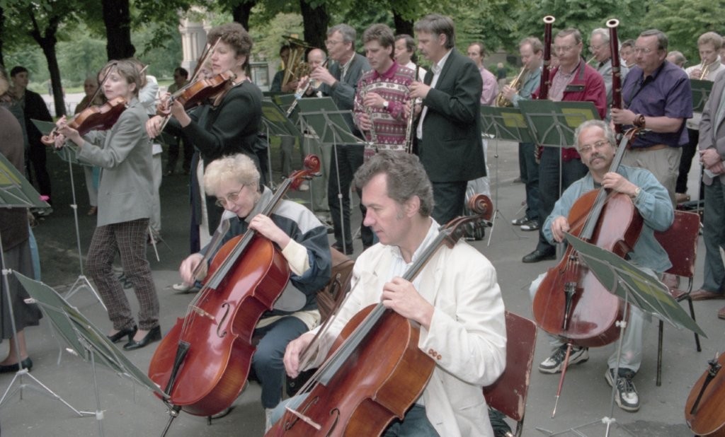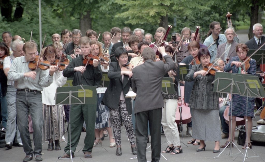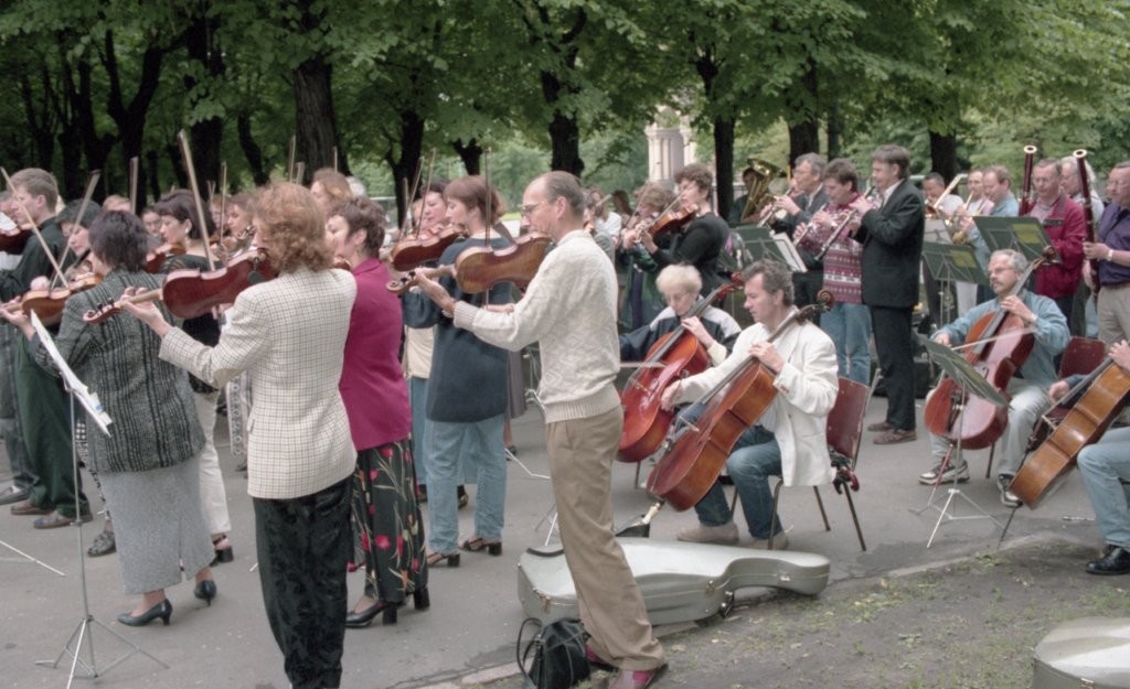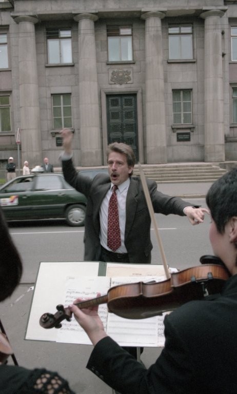 Simfoniskais orķestris piketē un muzicē pie Ministru kabineta