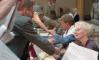 Dziesmu kari Latvijas universitātē. Guntis Ulmanis un Ausma Derkēvica.
