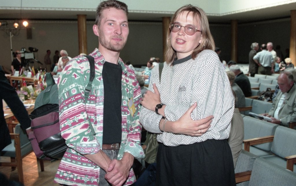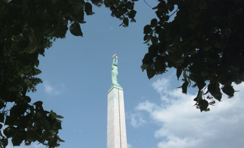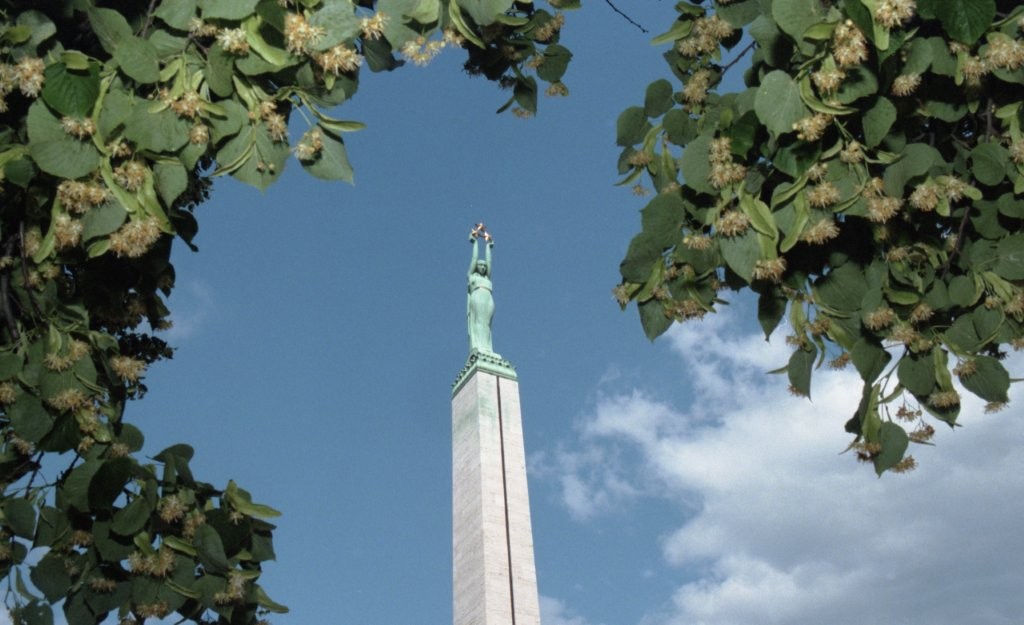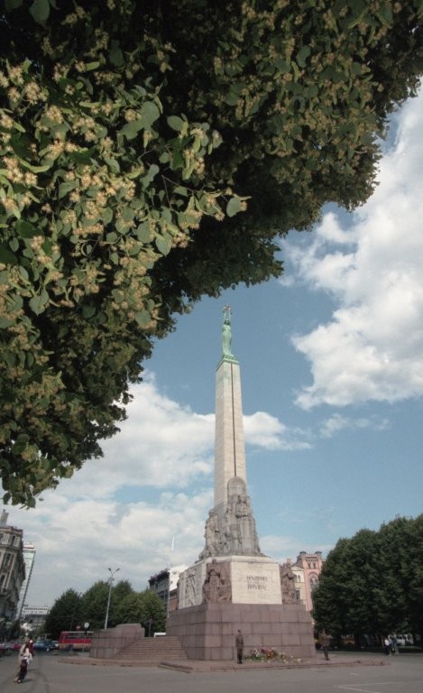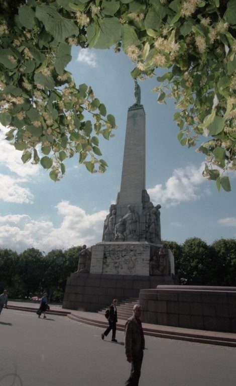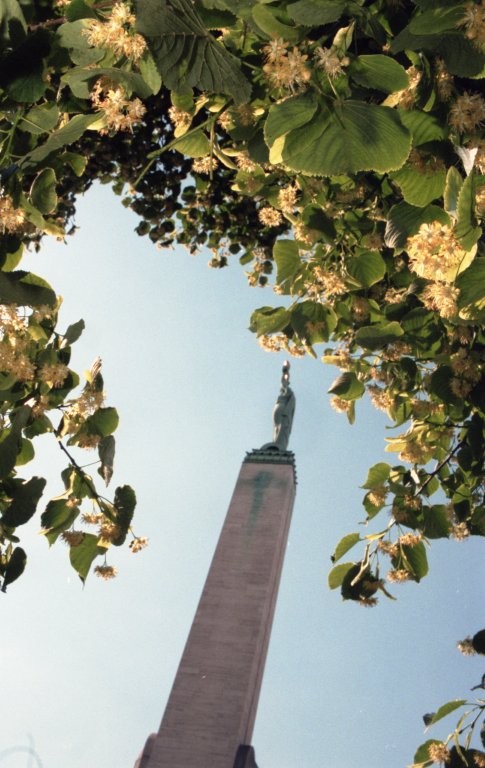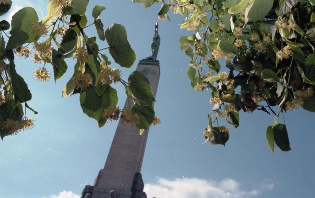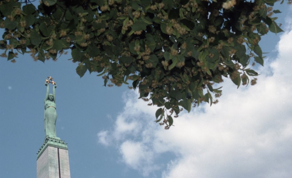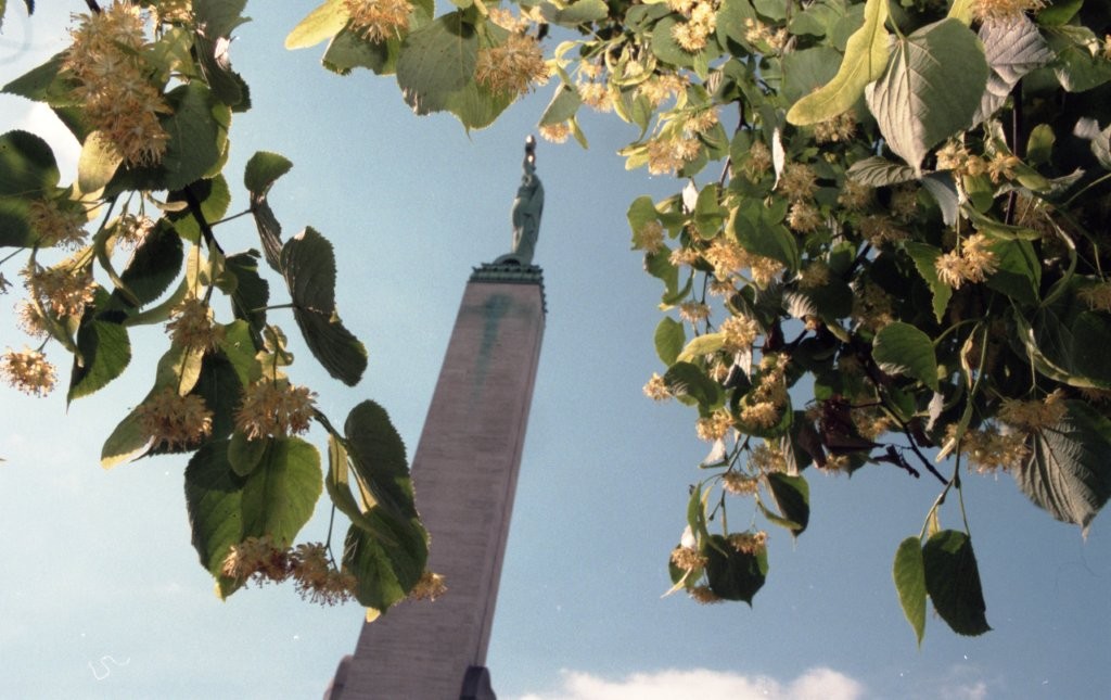 Dziesmu svētki. Kokars un Baiba Sipeniece. Brīvības piemineklis un liepas.