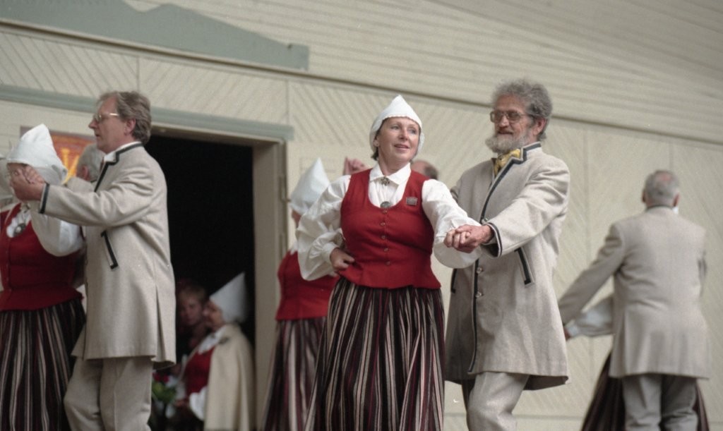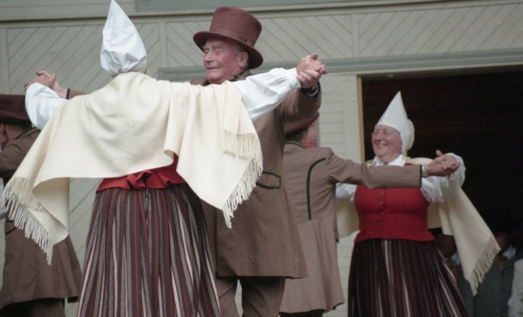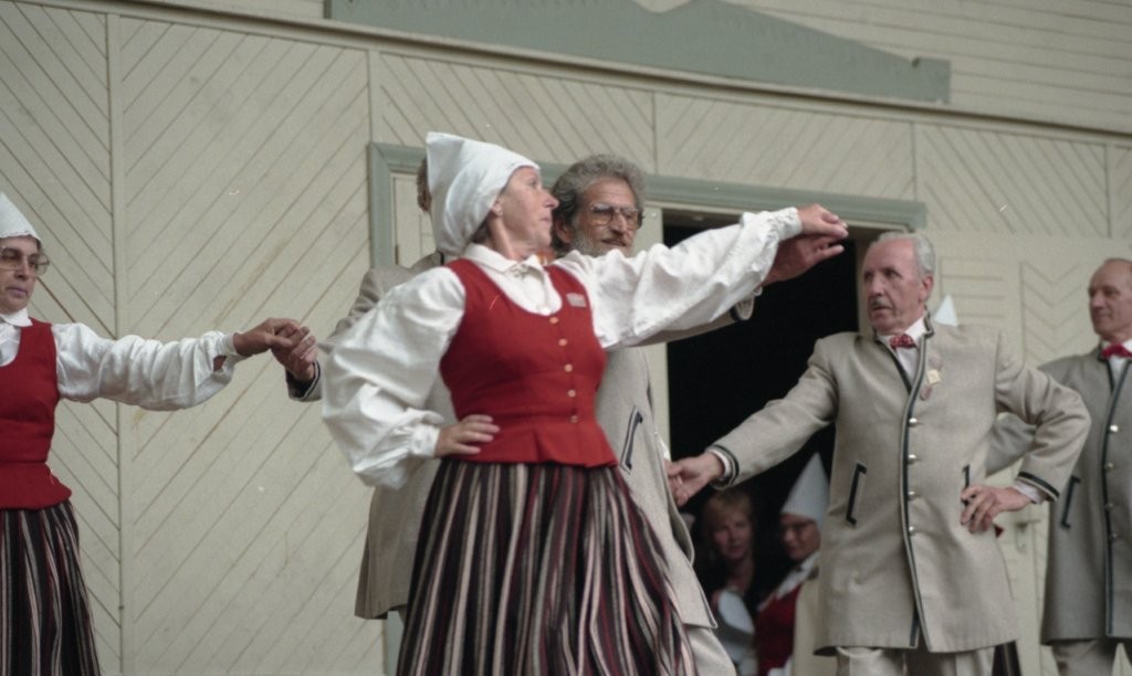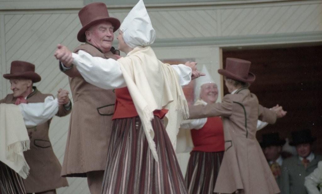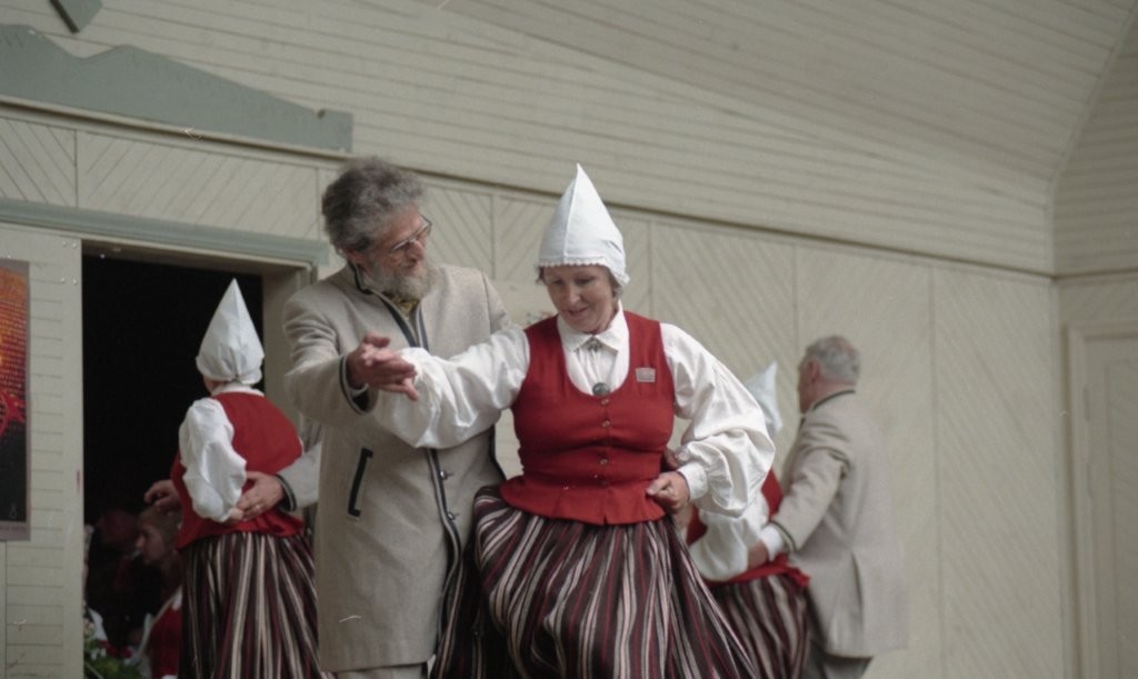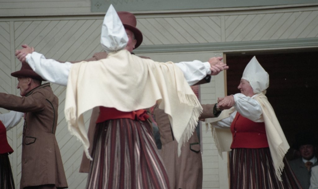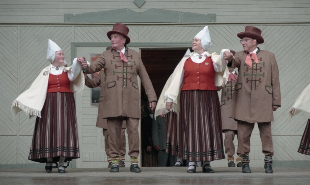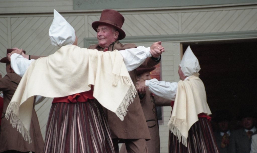 Dziesmu un deju svētki. Dejo vecie ļaudis.