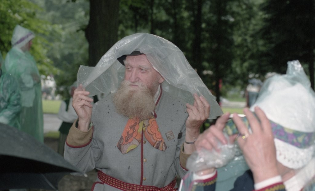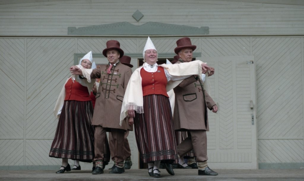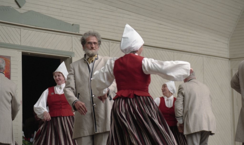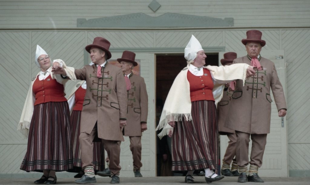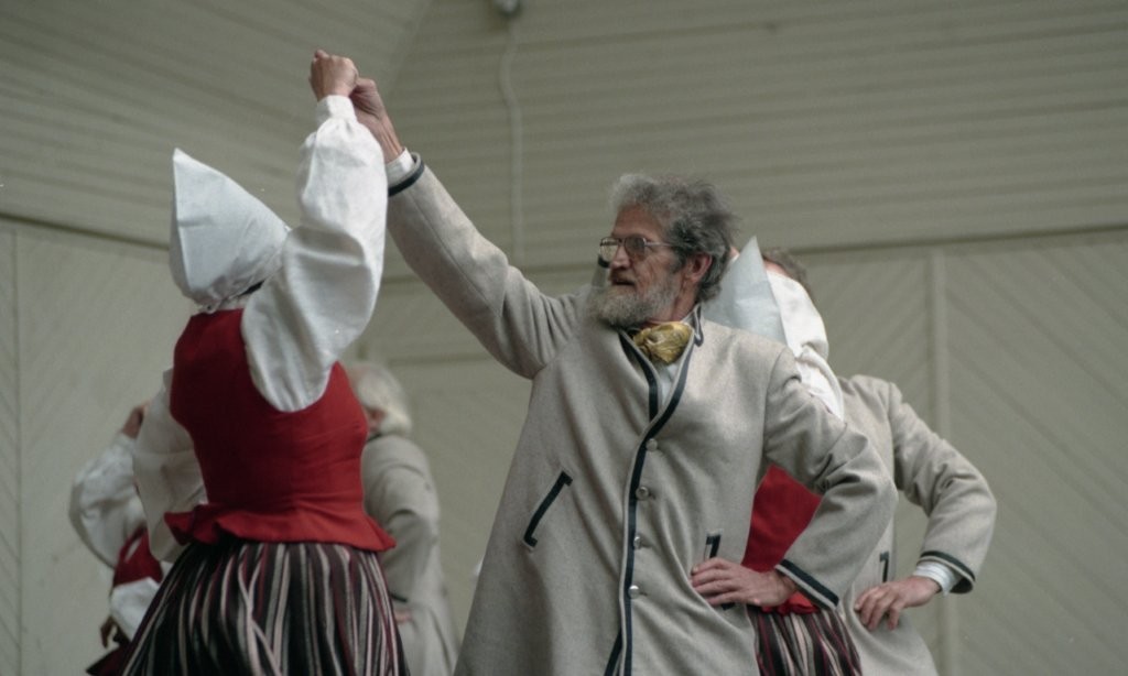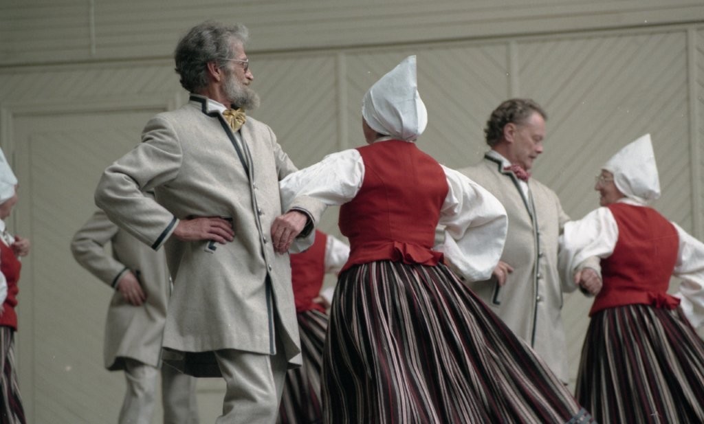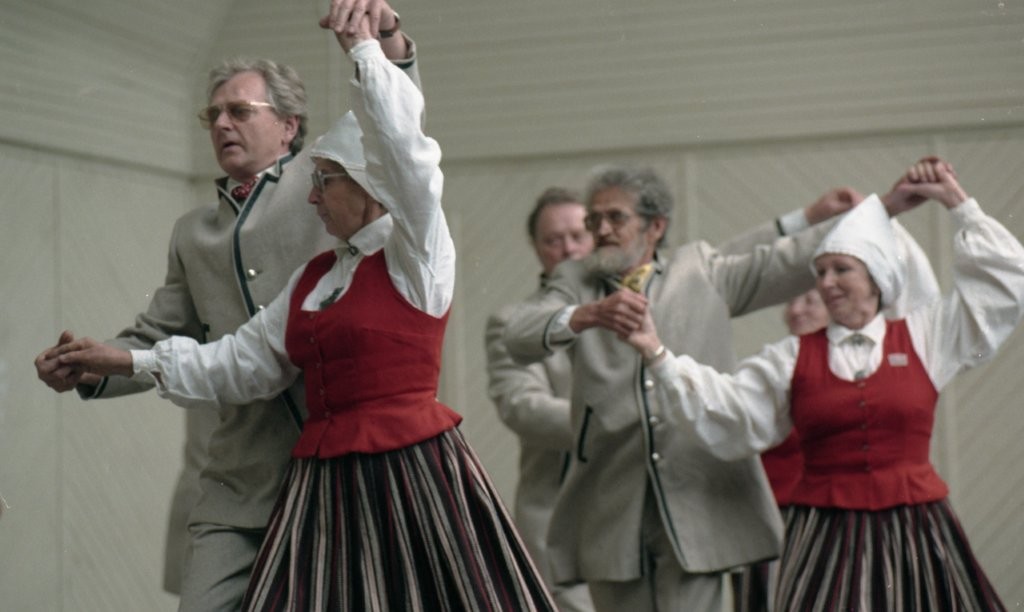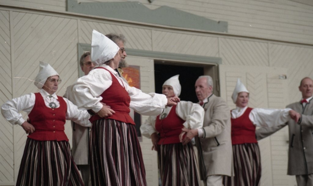 Dziesmu un deju svētki. Dejo vecie ļaudis.