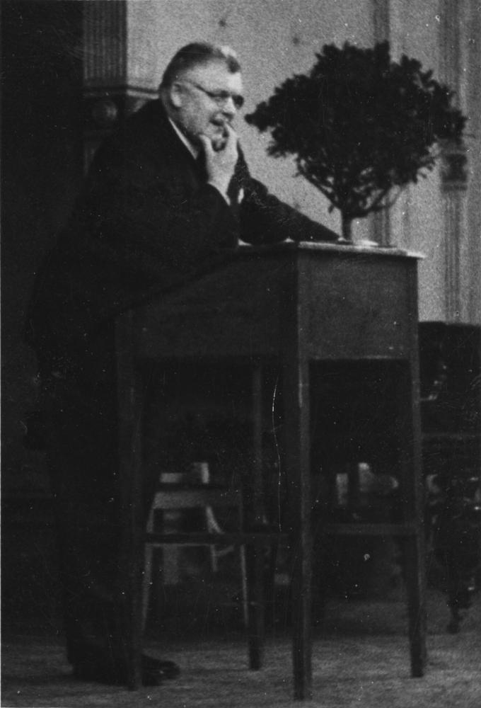 Latvijas Valsts un Ministru prezidents Kārlis Ulmanis uzstājas tribīnē, apspriedes laikā ar preses pārstāvjiem.