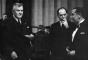 Latvijas Valsts un Ministru prezidenta Kārļa Ulmaņa un preses pārstāvju sanāksme. No kreisās: 1. Kārlis Ulmanis, 2. finanšu ministrs Ludvigs Ēķis.
