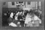 15. Liepājas pulka Virgas aizsargu nodaļas dalībnieki ar ģimenēm pie klātiem galdiem svētku pusdienu laikā.