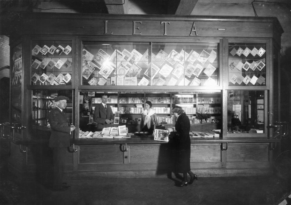 Latvijas Telegrāfa aģentūras (LETA) kiosks Rīgas Centrālā dzelzceļa stacijā (Rīgas Galvenā stacija).