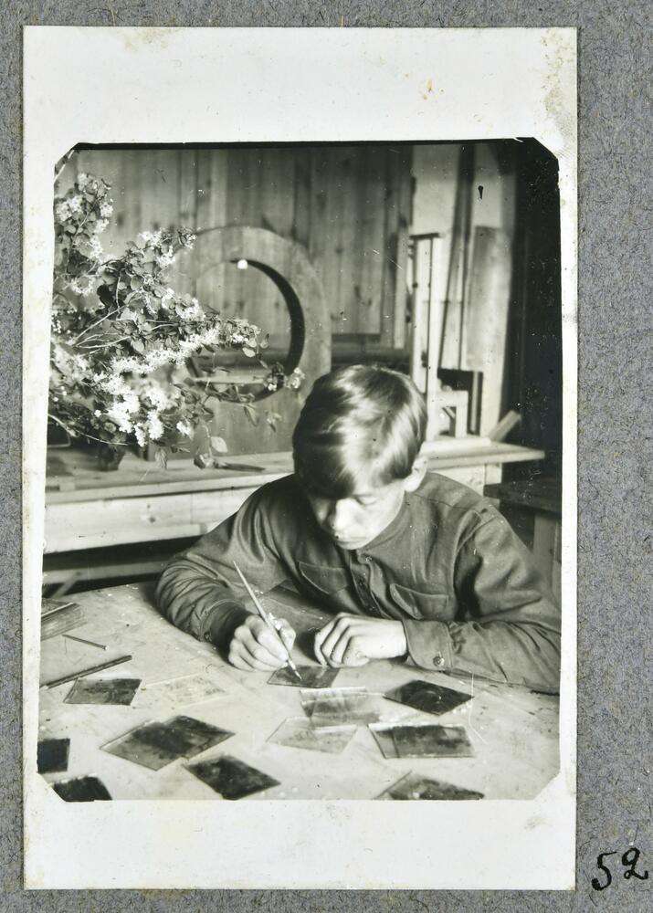 Jēkabpils Valsts vidusskolas skolēns veido diapozitīvus, ar kuriem tiks papildināts viņa referāts.