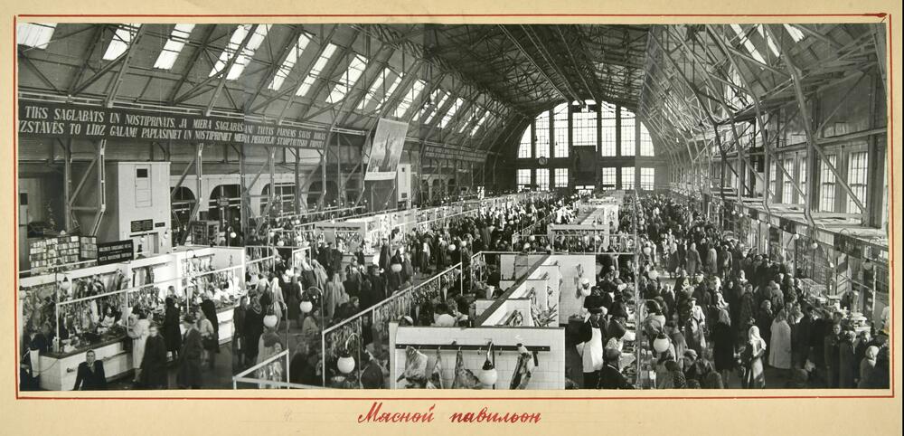 Rīgas Centrālais kolhozu tirgus (Rīgas Centrāltirgus). Gaļas paviljona iekšskats.