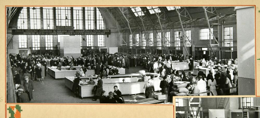 Rīgas Centrālais kolhozu tirgus (Rīgas Centrāltirgus). Kopējā paviljona iekšskats.
