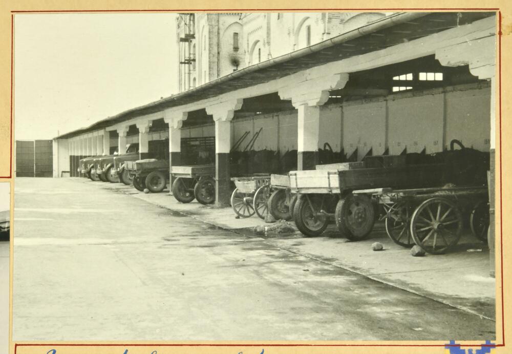 Rīgas Centrālais kolhozu tirgus (Rīgas Centrāltirgus). Iebraucamās vietas zirgu ratu nojume.