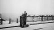 Latvijas Valsts un Ministru prezidents Kārlis Ulmanis uzrunājot apmeklētājus Krustpils-Jēkabpils dzelzceļa tilta atklāšanas ceremonijā Krustpilī. Fonā redzams skats uz Daugavu.