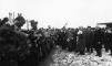 Latvijas Valsts un Ministru prezidents Kārlis Ulmanis sveic Jēkabpils pilsētas iedzīvotājus Krustpils-Jēkabpils dzelzceļa tilta svinīgajā atklāšanas ceremonijā.
