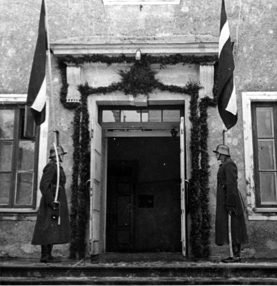 Sargi pie Latgales artilērijas pulka virsnieku kluba Krustpilī ieejas.
