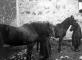 Krustpils-Jēkabpils dzelzceļa tilta atklāšanas ceremonija. Latgales artilērijas pulka virsnieku gaitnieki virsnieku kluba pagalmā ar zirgiem.
