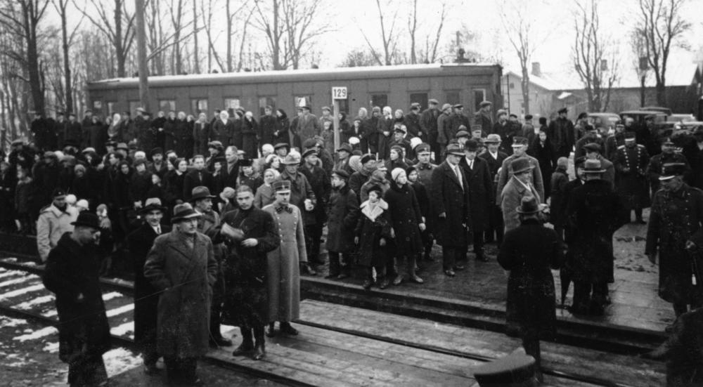 Krustpils-Jēkabpils dzelzceļa tilta atklāšanas ceremonija. Krustpils iedzīvotāji un pārvaldes pārstāvji sapulcējušies Krustpils dzelzceļa stacijā, lai pavadītu Latvijas Valsts prezidentu un Latvijas Ministru prezidentu Kārli Ulmanis uz vilcienu, kas dodas atpakaļ uz Rīgu.