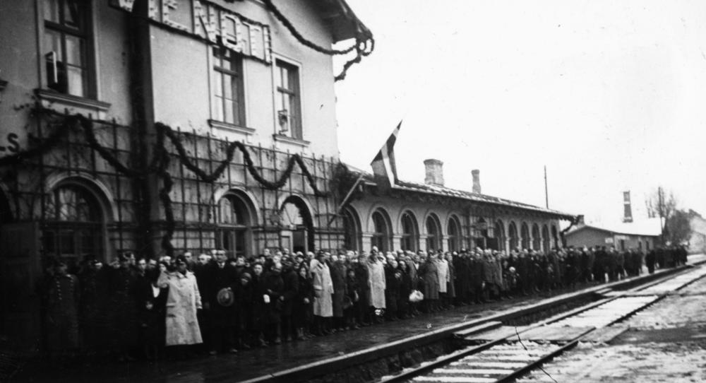 Krustpils-Jēkabpils dzelzceļa tilta atklāšanas ceremonija. Krustpils pārvaldes pārstāvji un iedzīvotāji pie Krustpils dzelzceļa stacijas pavada valdības vilcienu, kas atgriežas Rīgā.