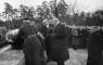 Svinīgā vainaga nolikšanas ceremonija Brāļu kapos par godu Latvijas valsts dibināšanas gadadienai. Priekšplānā no labās: 1. Ministru prezidenta biedrs Marģers Skujenieks, 2. Latvijas Valsts un Ministru prezidents Kārlis Ulmanis, 3. kara ministrs Jānis Balodis.