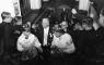 Latvijas Republikas proklamēšanas 18. gadadienai veltītais svinīgais pasākums Rīgas pilsētas 1. ģimnāzijā. Audzēkņi sagaida uz trepēm Latvijas Valsts prezidentu un Latvijas Republikas Ministru prezidentu Kārli Ulmani un Rīgas pilsētas galvu Robertu Liepiņu (uz trepēm).