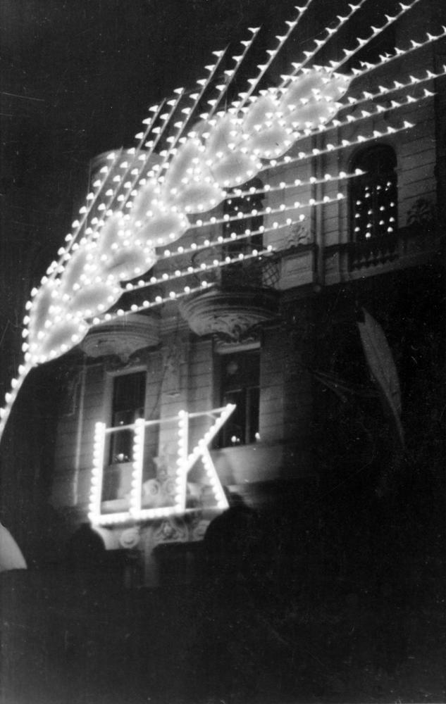 Iluminētā Latvijas lauksaimniecības kameras ēka par godu Latvijas Republikas proklamēšanas 18. gadadienas svinībām.