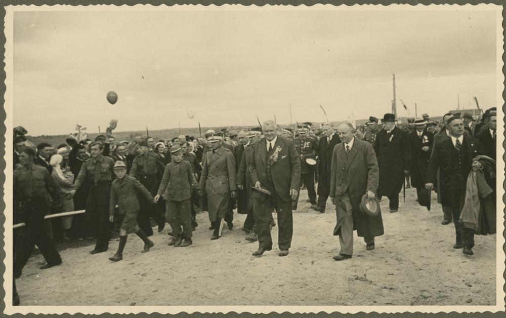 Latvijas Valsts un Ministru prezidents Kārlis Ulmanis (centrā) un Latvijas Lauksaimniecības kameras priekšsēdētājs Rūdolfs Dzērve (pa labi blakus Ulmanim) apmeklē Otros Latvijas Pļaujas svētkus Rēzeknē.