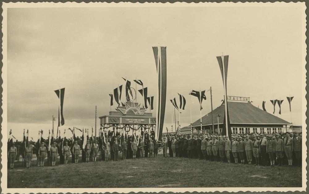Mazpulku biedru rinda sagaida Latvijas Valsts un Ministru prezidentu Kārli Ulmani Pļaujas svētku un Latgales lauksaimniecības izstādes laikā Rēzeknē.