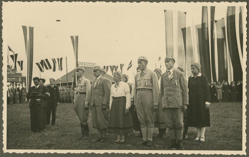 Mazpulku biedri tikšanās laikā ar Latvijas Valsts un Ministru prezidentu Kārli Ulmani Otro Latvijas Pļaujas svētku un Latgales Lauksaimniecības izstādes laikā Rēzeknē.