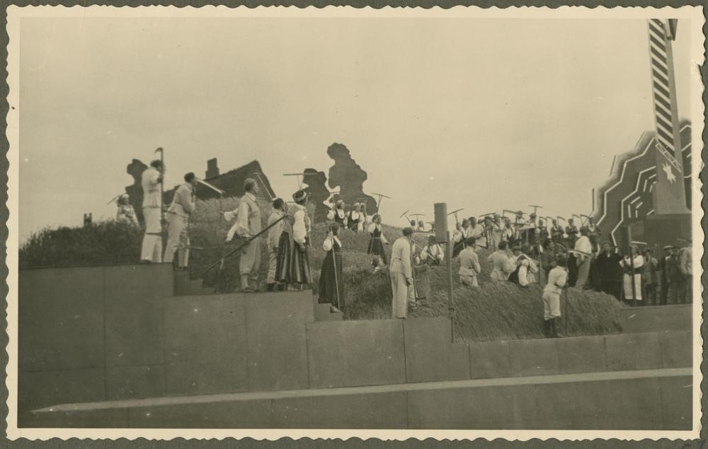 Alberta Sprūdža lugas ''Svētā zeme'' brīvdabas uzvedums Otro Latvijas Pļaujas svētku un Latgales Lauksaimniecības izstādes laikā Rēzeknē. Uzveduma režisors un scenogrāfs Jānis Muncis.