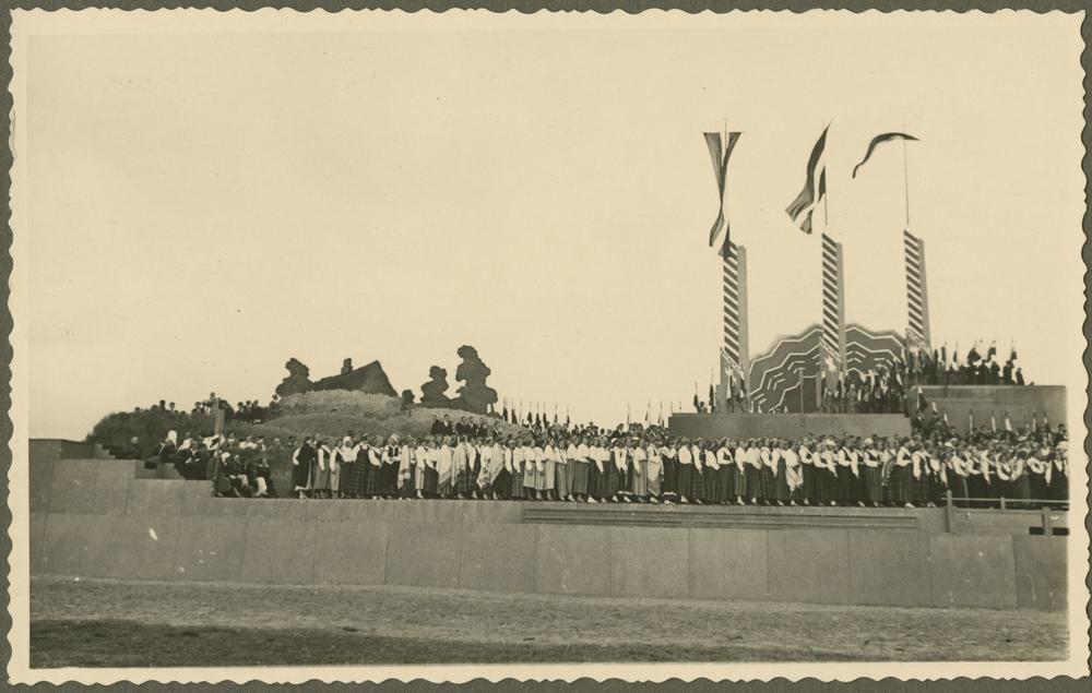 Alberta Sprūdža lugas ''Svētā zeme'' brīvdabas uzvedums Otro Latvijas Pļaujas svētku un Latgales Lauksaimniecības izstādes laikā Rēzeknē. Uzveduma režisors un scenogrāfs Jānis Muncis.