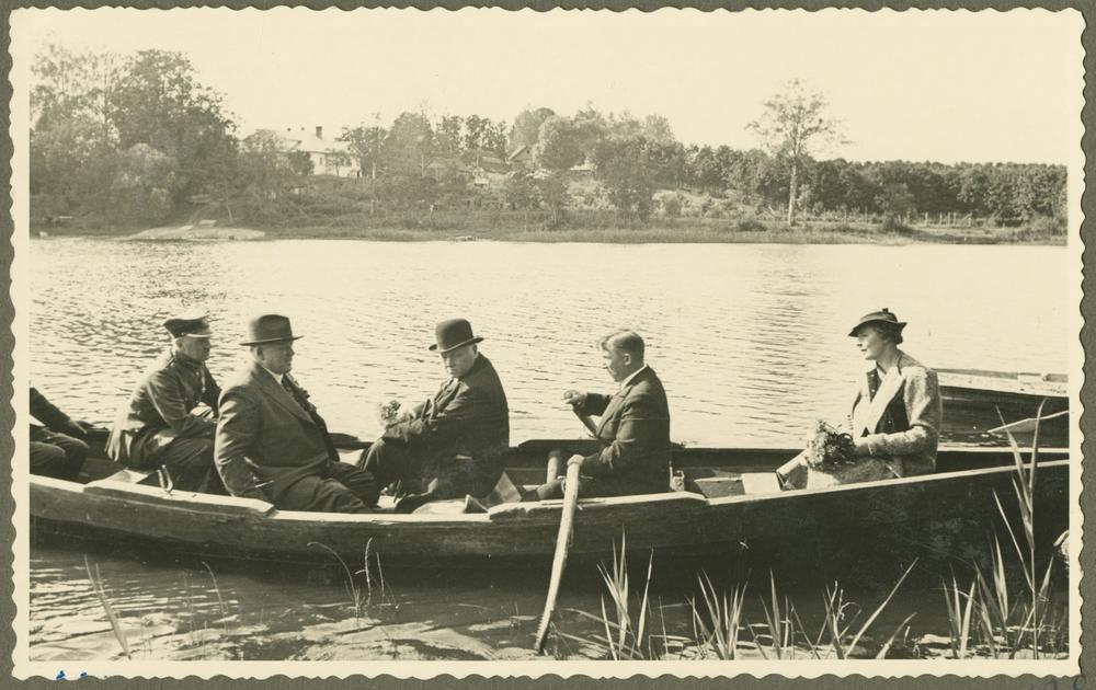 Latvijas Valsts un Ministru prezidents Kārlis Ulmanis vizinās ar laivu Adamovas ezerā, viesojoties Adamovas pamatskolā un bērnu patversmē Rēzeknes apriņķa Vērēmu pagastā. No kreisās: 2. Kārlis Ulmanis, 3. kara ministrs Jānis Balodis, 4. Adamovas pamatskolas un bērnu patversmes priekšnieks Jānis Ladusāns.