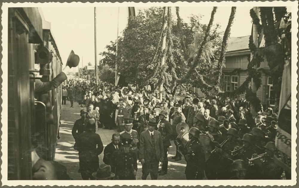 9. Rēzeknes kājnieku pulka orķestris un pilsētas iedzīvotāji dzelzceļa stacijā Rēzekne II pavada Latvijas Valsts un Ministru prezidentu Kārli Ulmani, kurš apmeklēja Otros Latvijas Pļaujas svētkus un Latgales Lauksaimniecības izstādi.