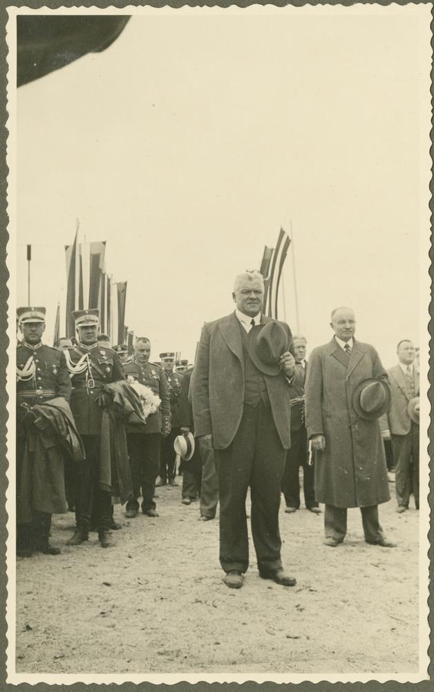 Latvijas Valsts un Ministru prezidents Kārlis Ulmanis un Latvijas Lauksaimniecības kameras priekšsēdētājs Rūdolfs Dzērve apmeklē Otros Latvijas Pļaujas svētkus Rēzeknē. Priekšplānā no kreisās: 1. Kārlis Ulmanis, 2. Rūdolfs Dzērve.