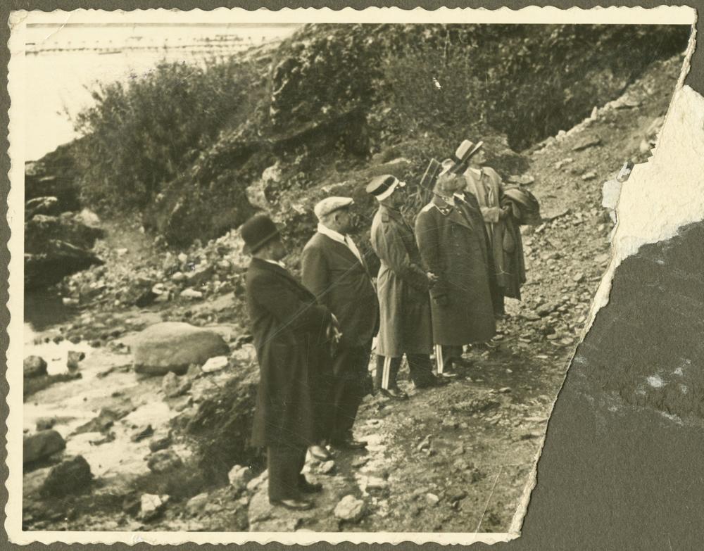 Latvijas Valsts un Ministru prezidents Kārlis Ulmanis un kara ministrs Jānis Balodis Daugavas krastā netālu no Staburaga, Sēlpils pagastā. No kreisās: 1. Jānis Balodis, 2. Kārlis Ulmanis.