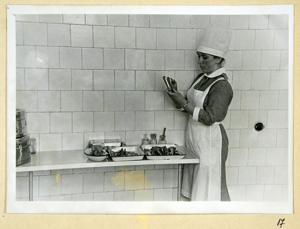 Rīgas pilsētas 6. apvienotās slimnīcas medmāsa laboratorijā veic medicīnas instrumentu pārbaudi.