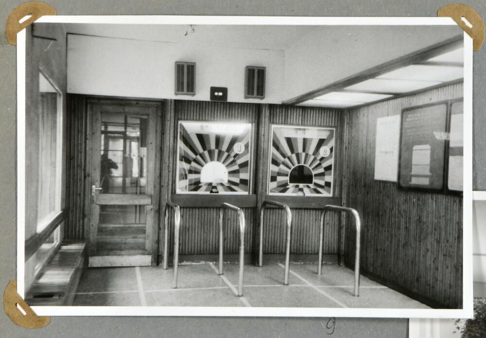 Bērnu kinoteātris "Pionieris" Rīgā, Andreja Upīša ielā 2 (tagad Skolas iela). Skats uz biļešu kasēm.