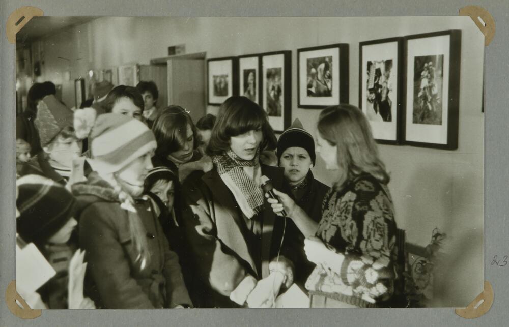 Bērnu kinoteātrī "Pionieris" intervē apmeklētājus pirms filmas seansa.